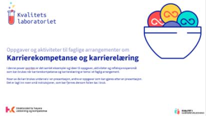 Kanskje skal du lage et faglig opplegg for kolleger om hva karrierekompetanse er. Eller har du fått ansvar for å lage et opplegg til en fagdag om karrierelæring? Eller kanskje du skal holde en presentasjon for en større gruppe på en konferanse.