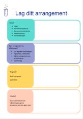Her får du noen tips til hva det kan være lurt å ha tenkt gjennom på forhånd. Hvis dere er flere som skal planlegge arrangementet sammen kan dere denne malen i planleggingen.