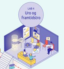 Du kan besøke de fire laboratoriene digitalt ved å klikke på dem. I laboratoriegaten kan du besøke de ulike stasjonene digitalt og få opp tips og ressurser.