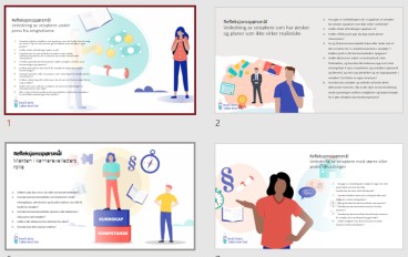 Bruk gjerne refleksjonsspørsmålene til egenrefleksjon eller test ut metoden Etisk refleksjon i team hos dere. Du kan laste ned alle refleksjonsspørsmålene i en egen presentasjon.